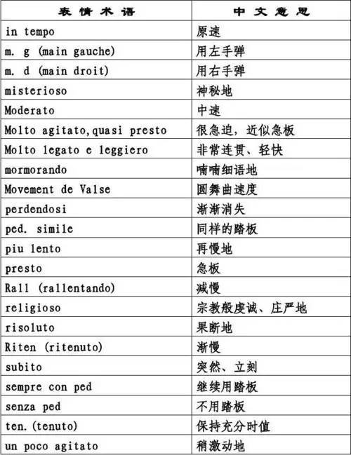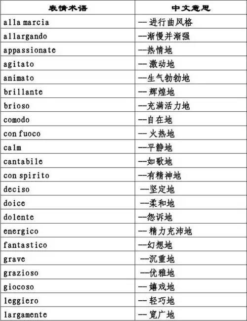 表情术语是指明乐曲在演唱、演奏时表情要求的文字标记。表情术语的作用主要为帮助演奏更好、更快地理解和表达音乐作品的感情。