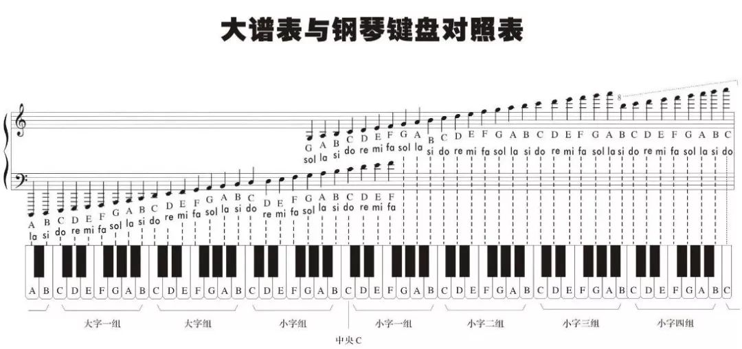 大谱表与钢琴健盘对照表