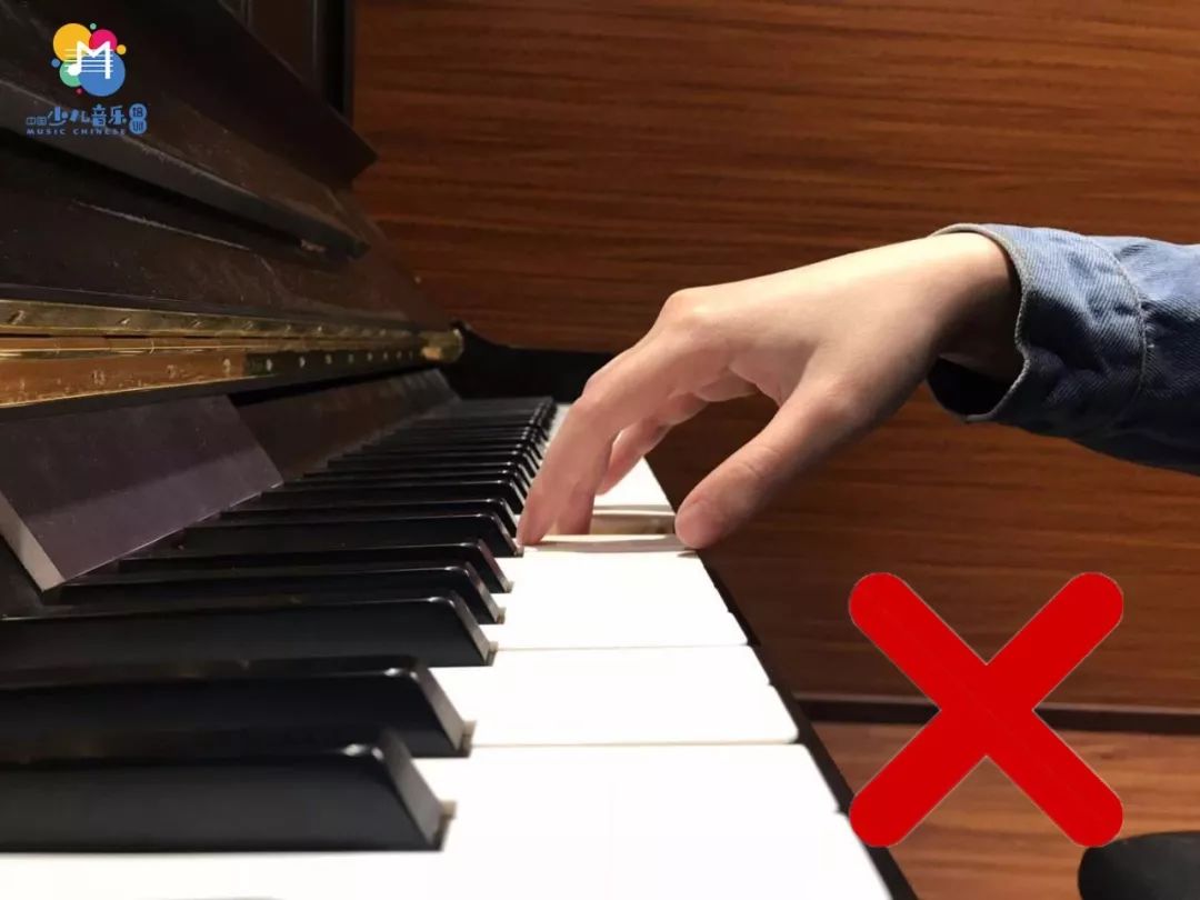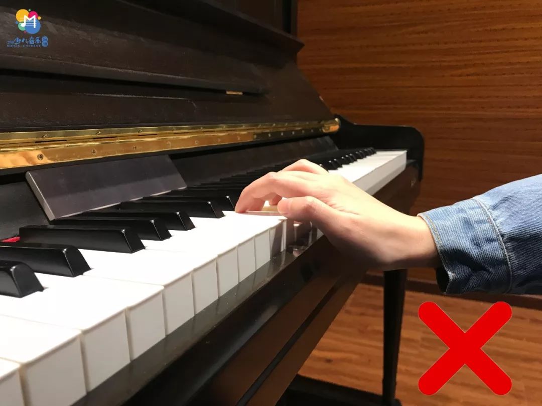 顶起手腕会使抬手指变得非常困难,不能正常的上下抬指,力量的传递也会受到影响,手腕的正确位置应该是将大拇指水平放置在琴键上,手腕和大拇指保持一条水平线。