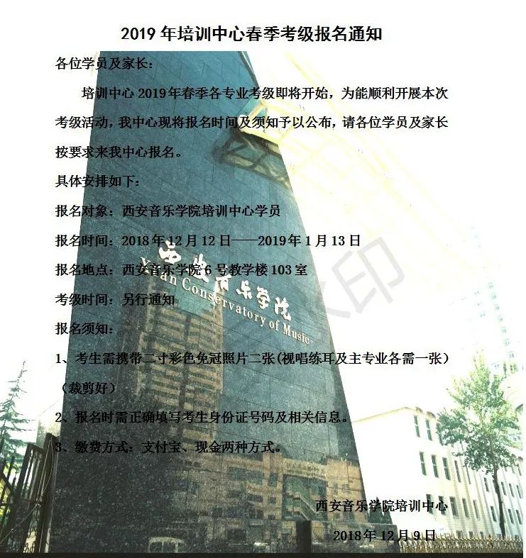 西安音乐学院培训考级中心2019年春季考级报名通知