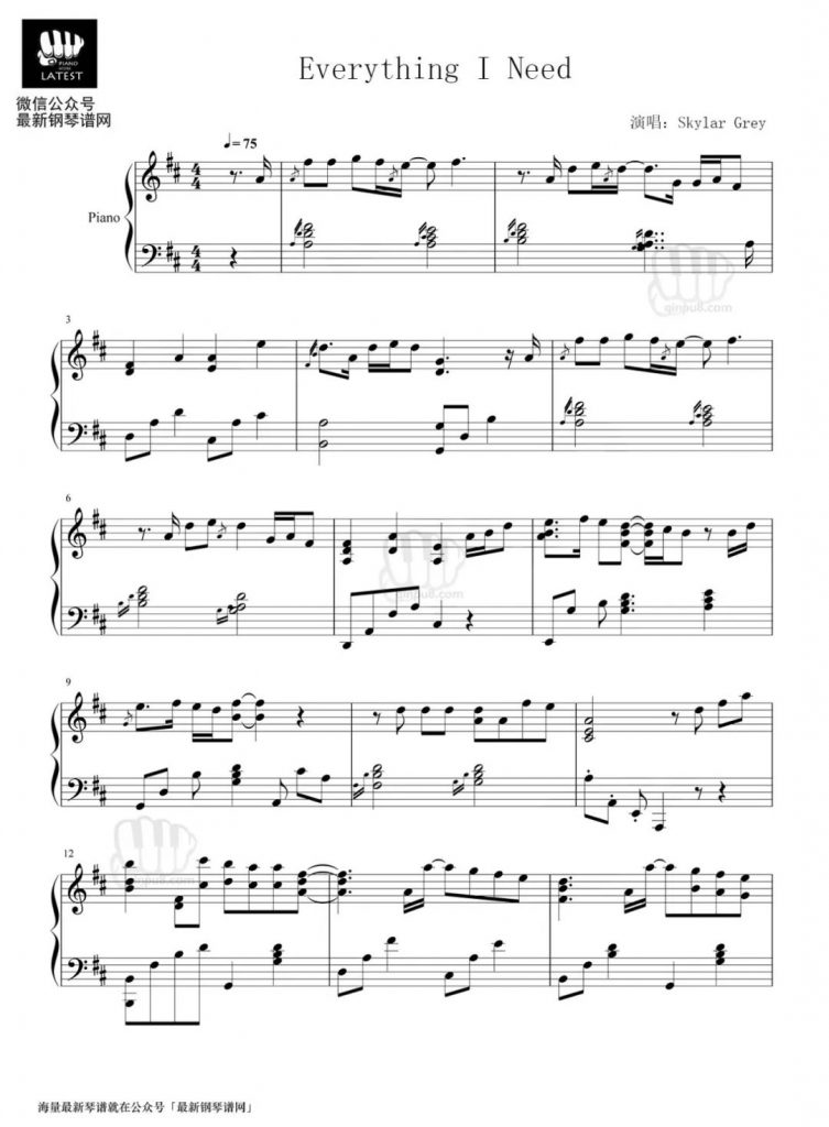 《海王》片尾曲《 Everything I Need》钢琴谱