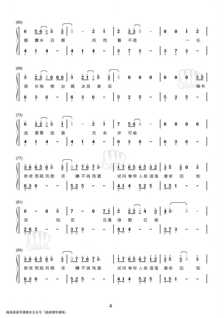 王菲经典爱情歌曲《棋子》钢琴版~ 附谱