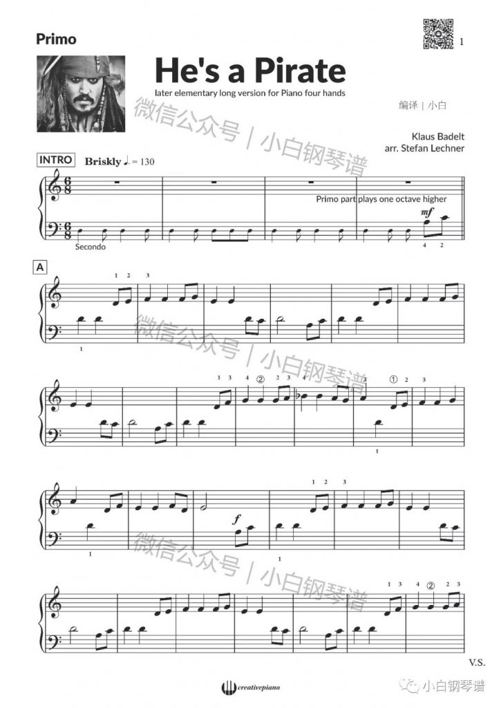 《加勒比海盗》超经典 四手联弹 附琴谱!