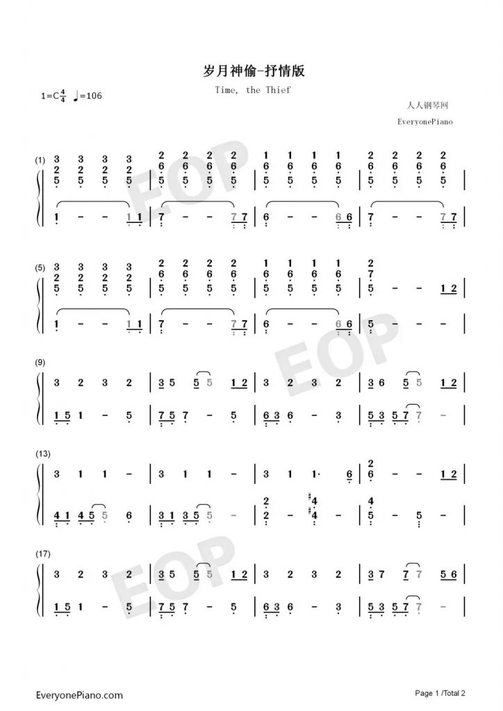 当前位置:首页 » 曲谱 » 《岁月神偷》钢琴简谱