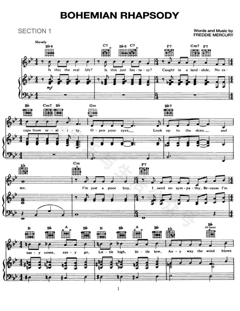 钢琴弹唱《波西米亚狂想曲》,致敬经典,致敬伟大~附谱