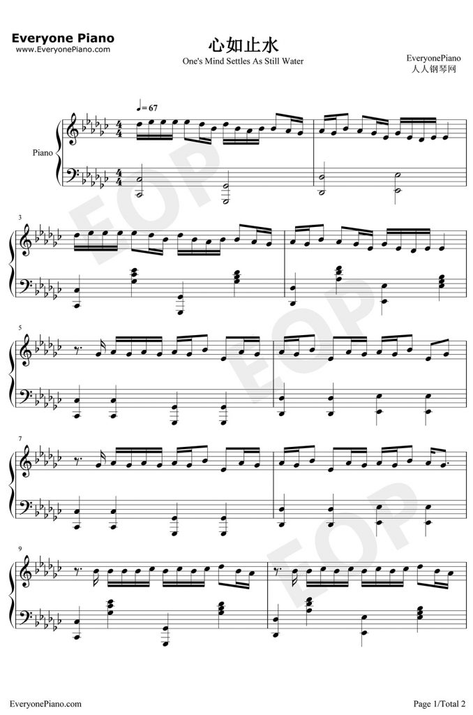 《心如止水》-文武贝钢琴版,附谱