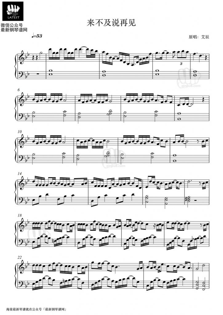 《来不及说再见》钢琴谱–艾辰