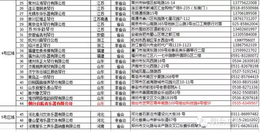 2016第十六届“星海杯”钢琴比赛分赛场统计表