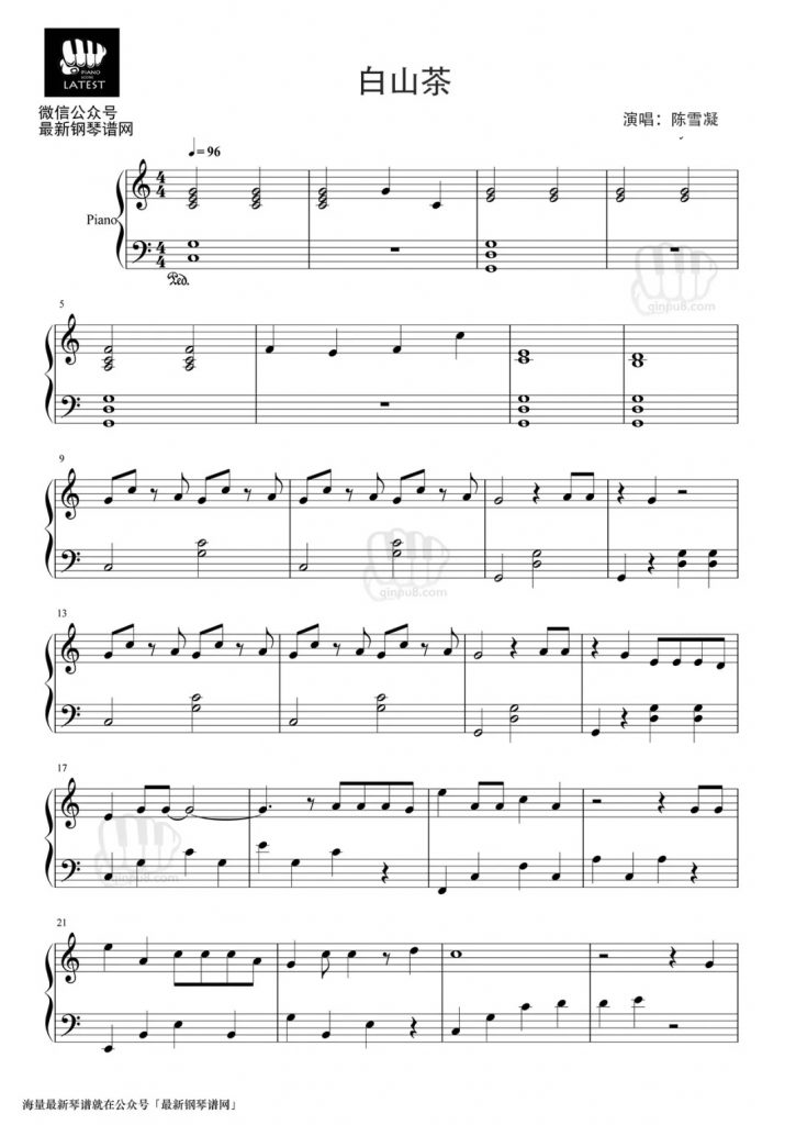 陈雪凝《白山茶》钢琴谱