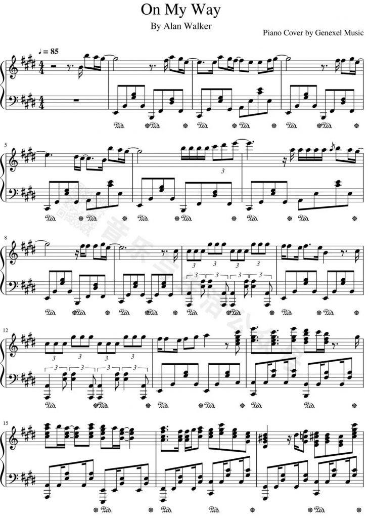 《On My Way》钢琴谱-Alan Walker最新大热单曲