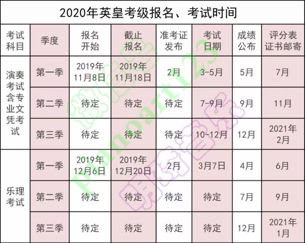 报名参加第一季(3-5月)和第三季(10-12月)的演奏考试的国内考生请注意,这两个时间段正处于国内学校开课期间,在这个时间段的考试时间会被安排在上课期间(周一至周五),如果在开课期间无法请假的考生请报名参加7/8月份的考试。