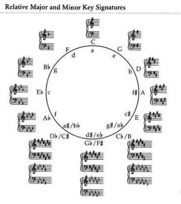 11. 近关系调、远关系调:在调的五度循环中,除了相邻的两个调是近关系调外,其它各调都叫做远关系调。