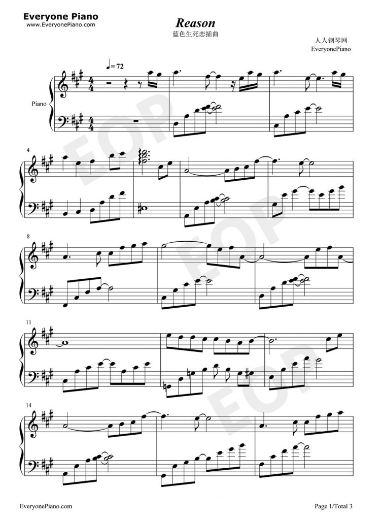 《蓝色生死恋》插曲《Reason》是一首悲伤,让人忍不住想哭的音乐,我想过了多少年,也永远不会忘记这首曲子的。