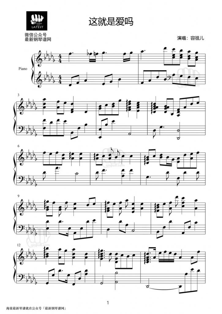 抖音热歌容祖儿《这就是爱吗》钢琴版,好听极了!附谱