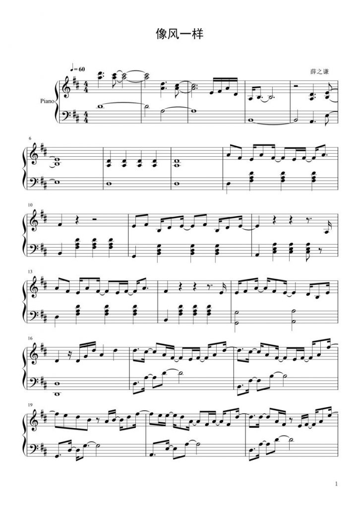 薛之谦《像风一样》即兴钢琴版,附谱