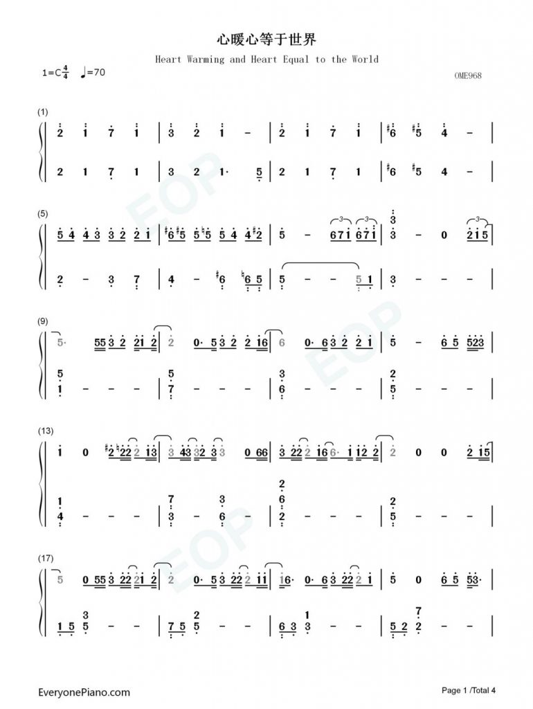 《心暖心等于世界》钢琴谱–抗疫情公益歌曲