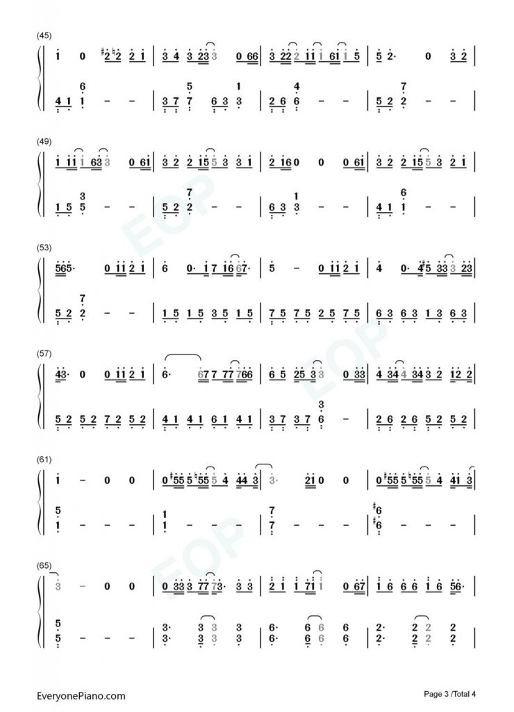TA 钢琴数字简谱 简单版-抖音热歌-不是花火呀