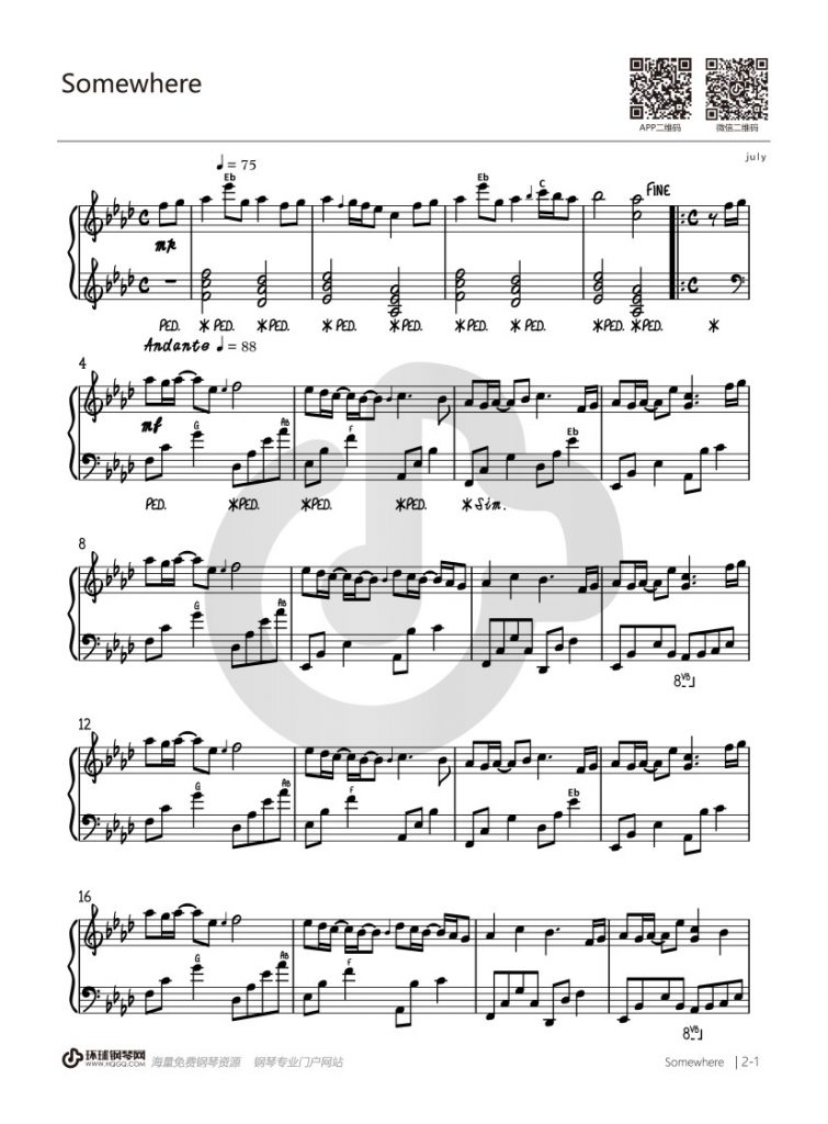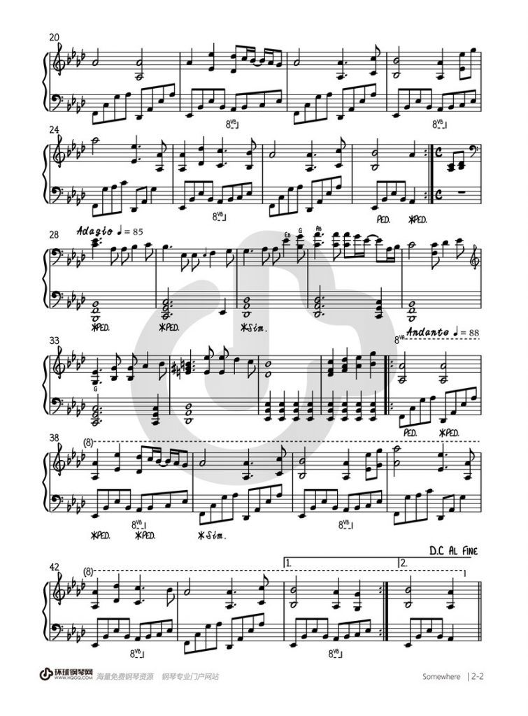 《Somewhere》钢琴演奏