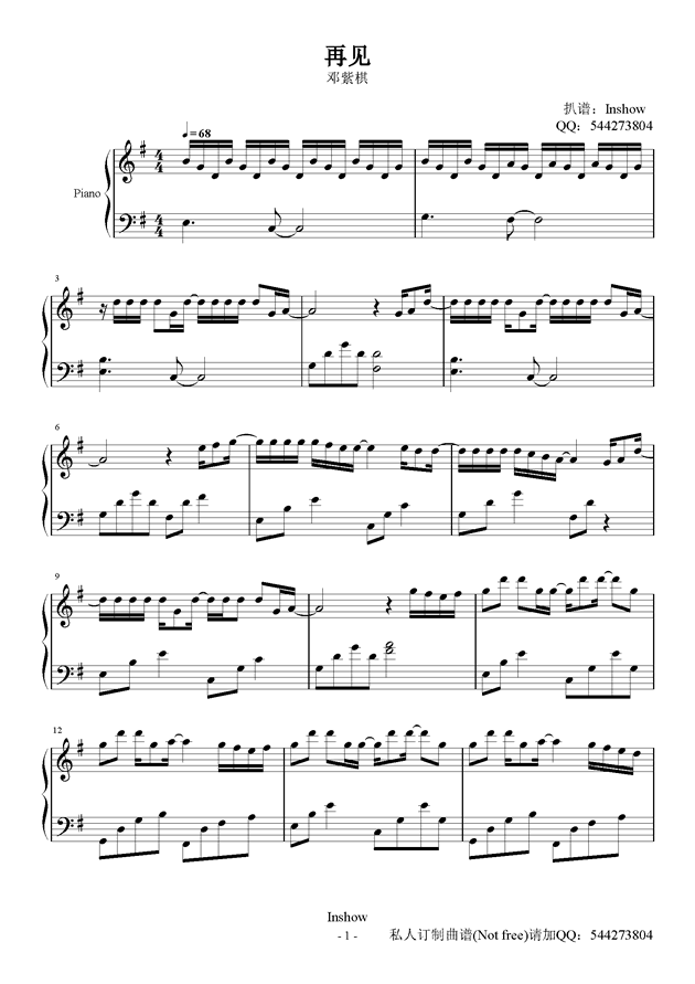 《透明》钢琴谱-邓紫棋饶舌情歌