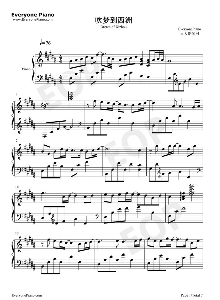 抖音热曲《吹梦到西洲》钢琴数字简谱