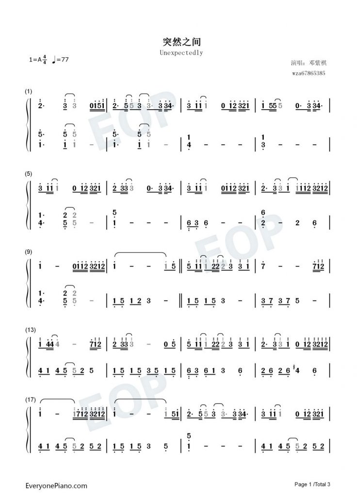 邓紫棋《突然之间》钢琴数字简谱