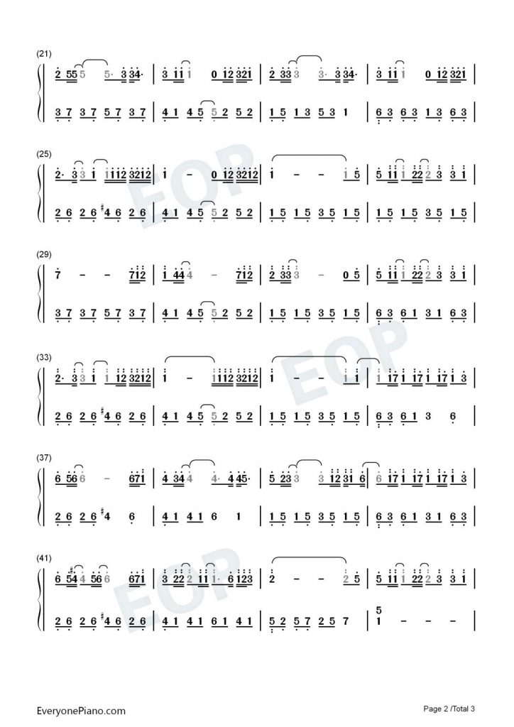 TA 钢琴数字简谱 简单版-抖音热歌-不是花火呀