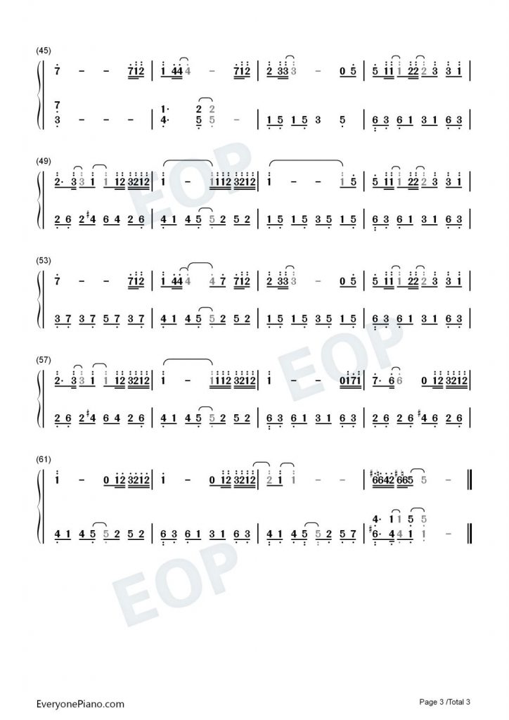放飞 钢琴数字简谱-简单版-赘婿主题曲 – 许嵩