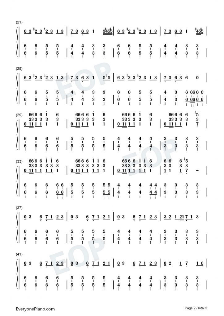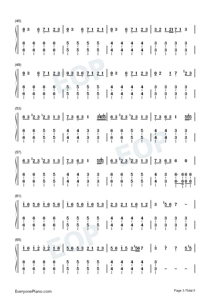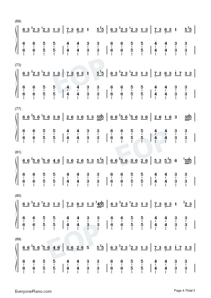 TA 钢琴数字简谱 简单版-抖音热歌-不是花火呀