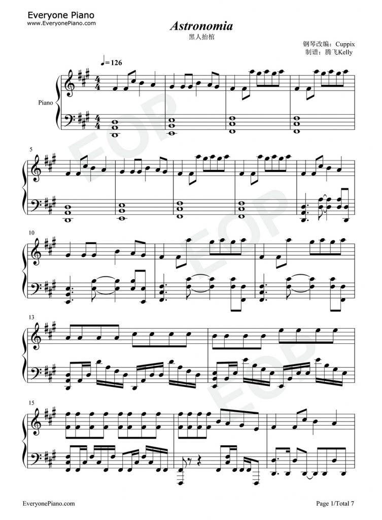 黑人抬棺Astronomia 钢琴谱 –电音神曲
