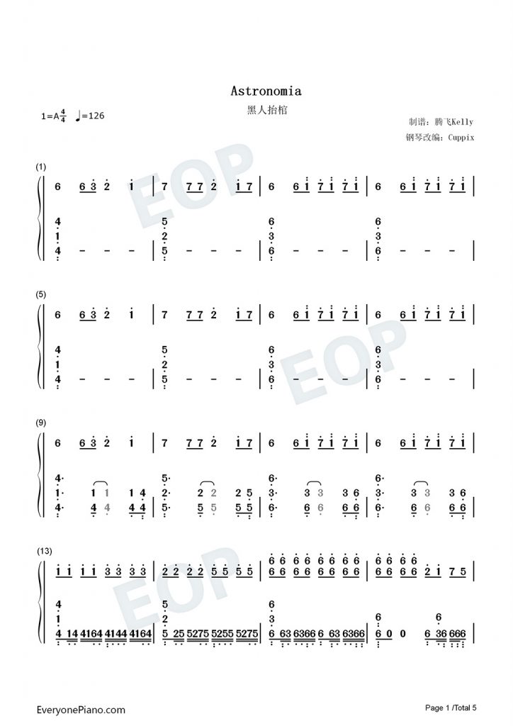 黑人抬棺Astronomia 钢琴谱 –电音神曲