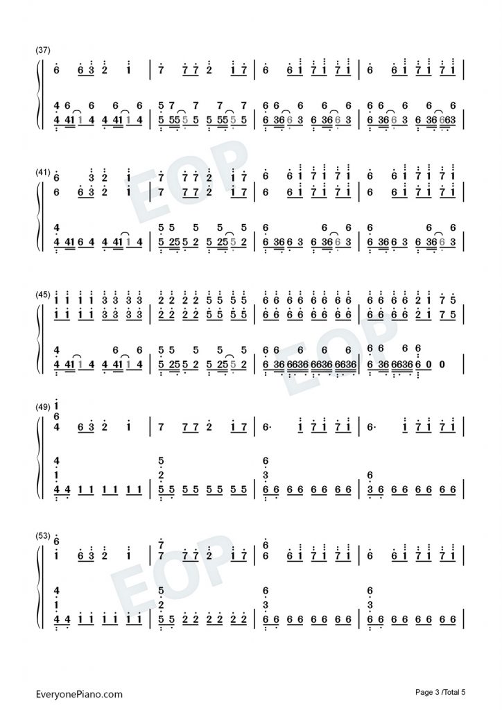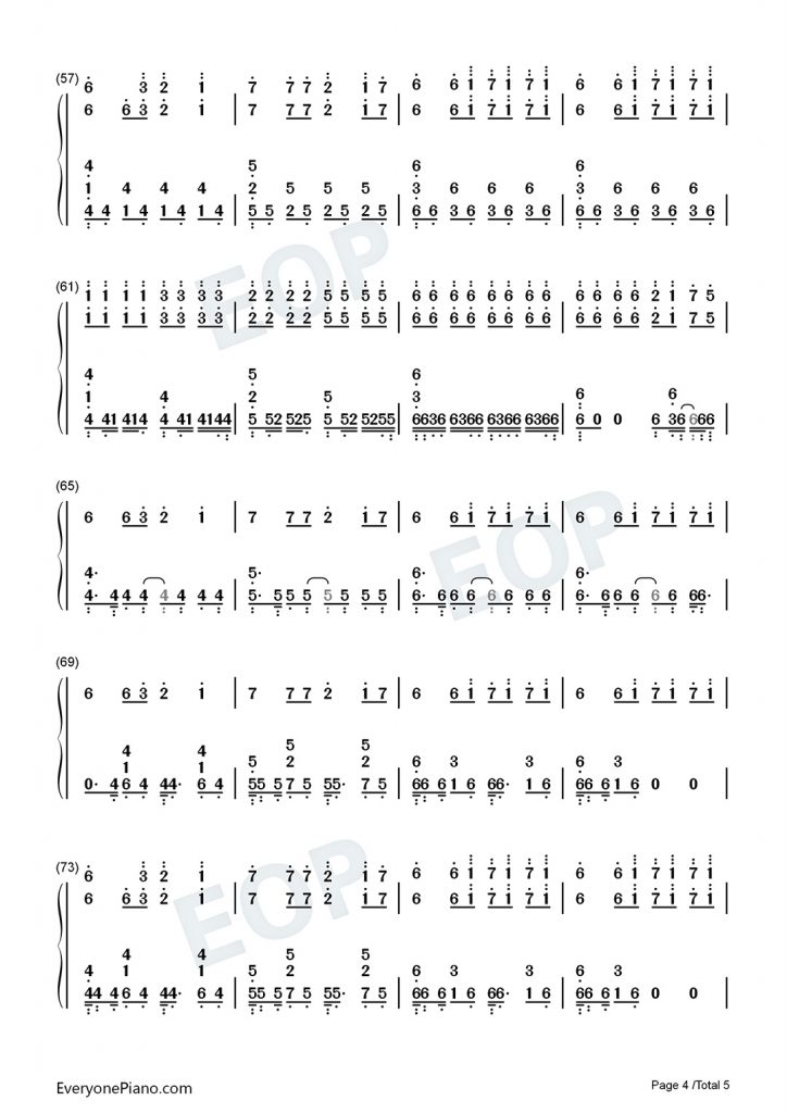 TA 钢琴数字简谱 简单版-抖音热歌-不是花火呀