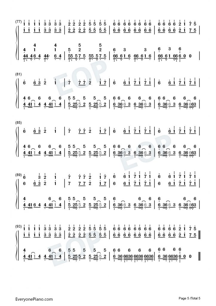 刘畊宏 彩虹天堂 钢琴双手数字简谱