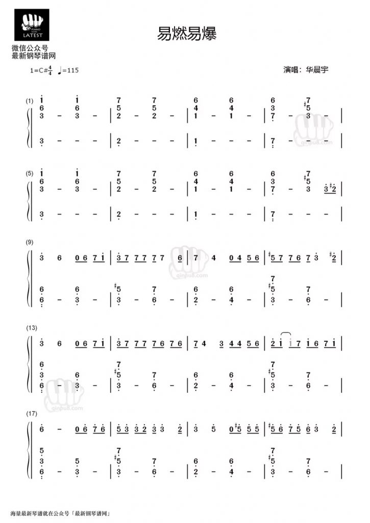 易燃易爆炸 钢琴数字简谱–华晨宇