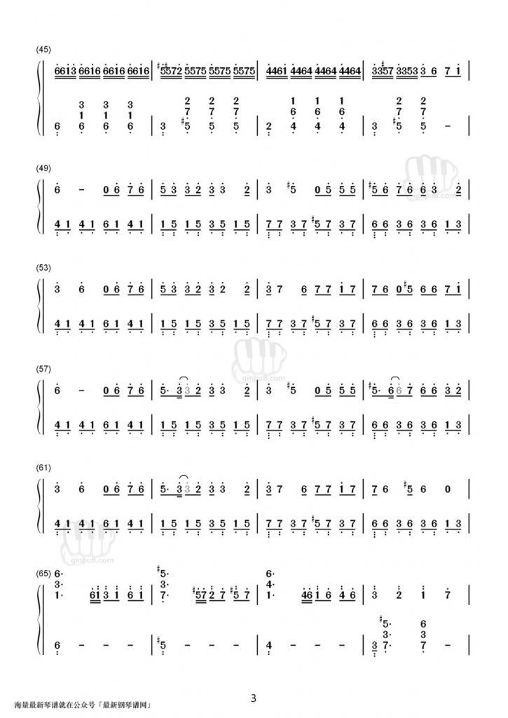 刘畊宏 彩虹天堂 钢琴双手数字简谱