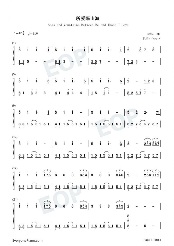 晚夜微雨问海棠 钢琴数字简谱-爱恨此消彼长停步回望我陪你同往-二哈和他的白猫师尊
