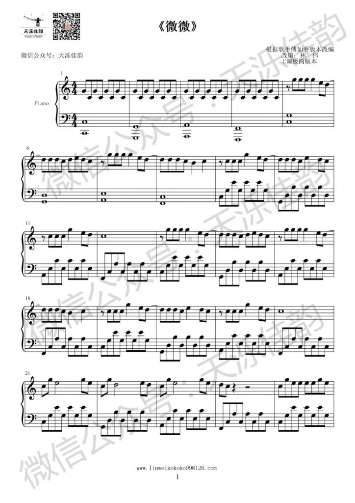 微微 钢琴谱–微微她很渺小,却从不疲倦。
