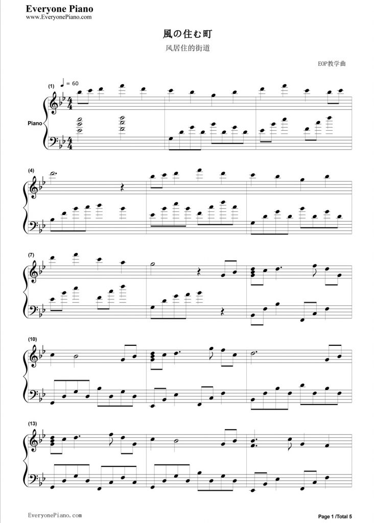 风居住的街道 钢琴谱