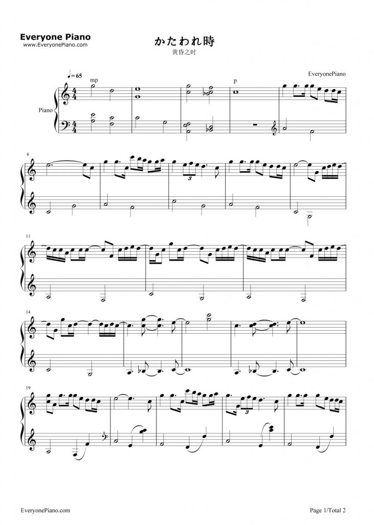 黄昏之时 钢琴版 附谱 -你的名字插曲