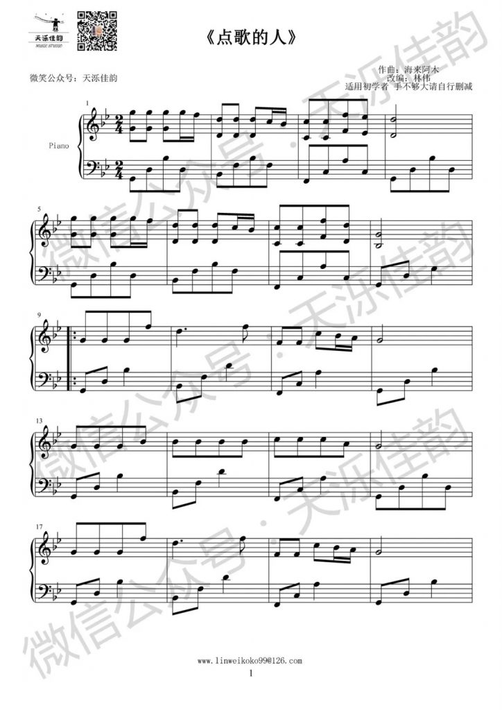 当前位置:首页 » 曲谱 » 流行曲谱 » 点歌的人 钢琴谱-海来阿木
