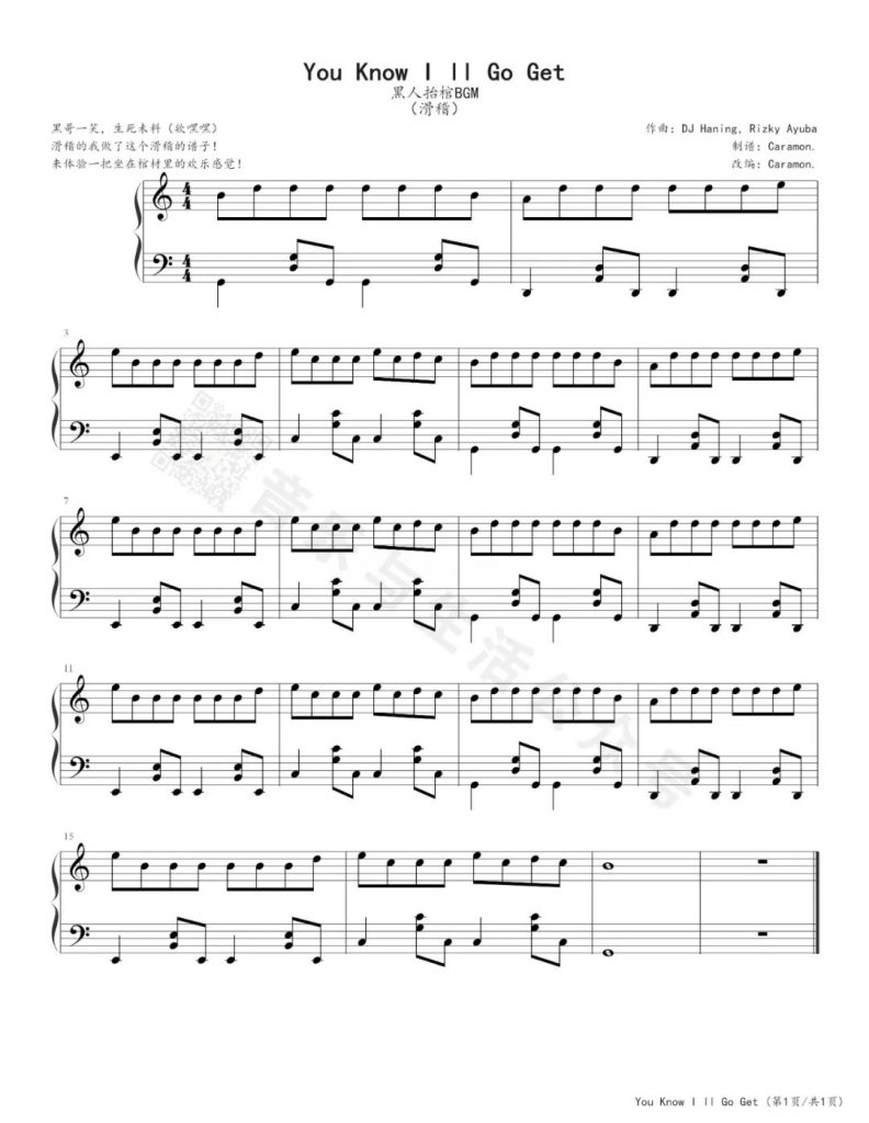 抖音黑人抬棺《You Know I’ll Go Get》钢琴谱