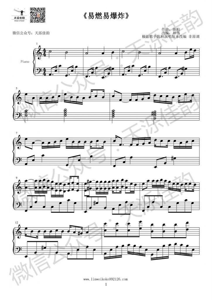 当前位置:首页 » 曲谱 » 流行曲谱 » 陈粒 易燃易爆炸 钢琴谱 C调简易版