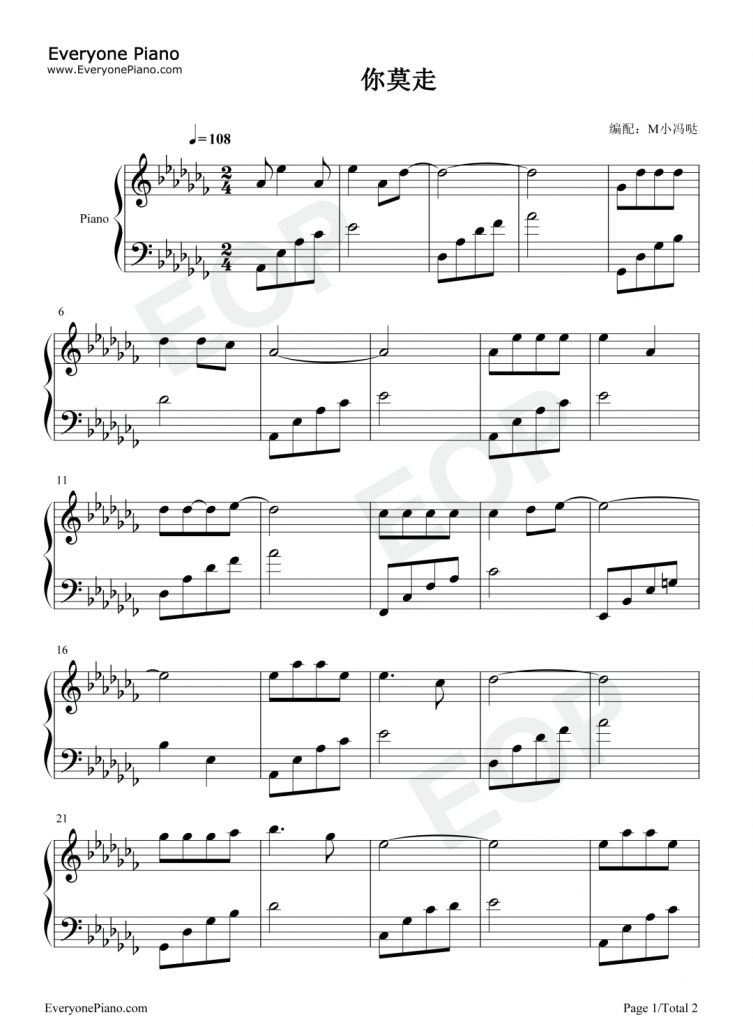 抖音热歌山水组合《你莫走》钢琴数字简谱