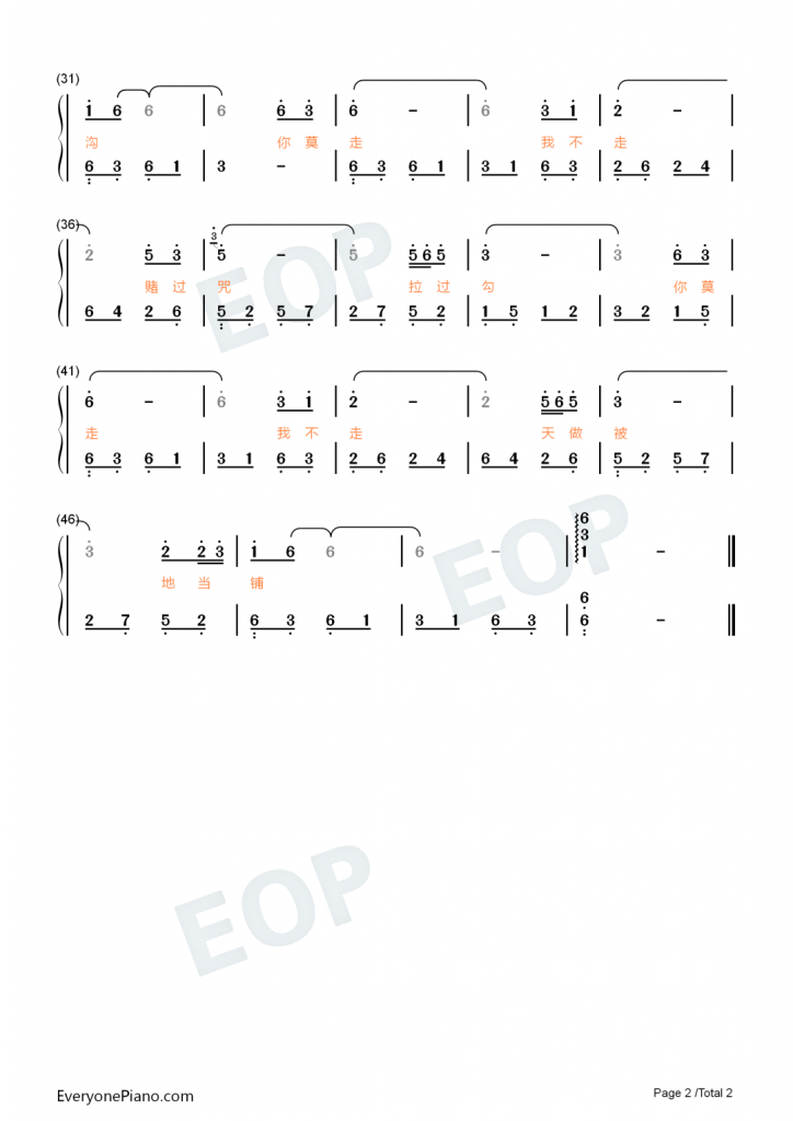 不负人间 钢琴谱- 阿YueYue-抖音热歌