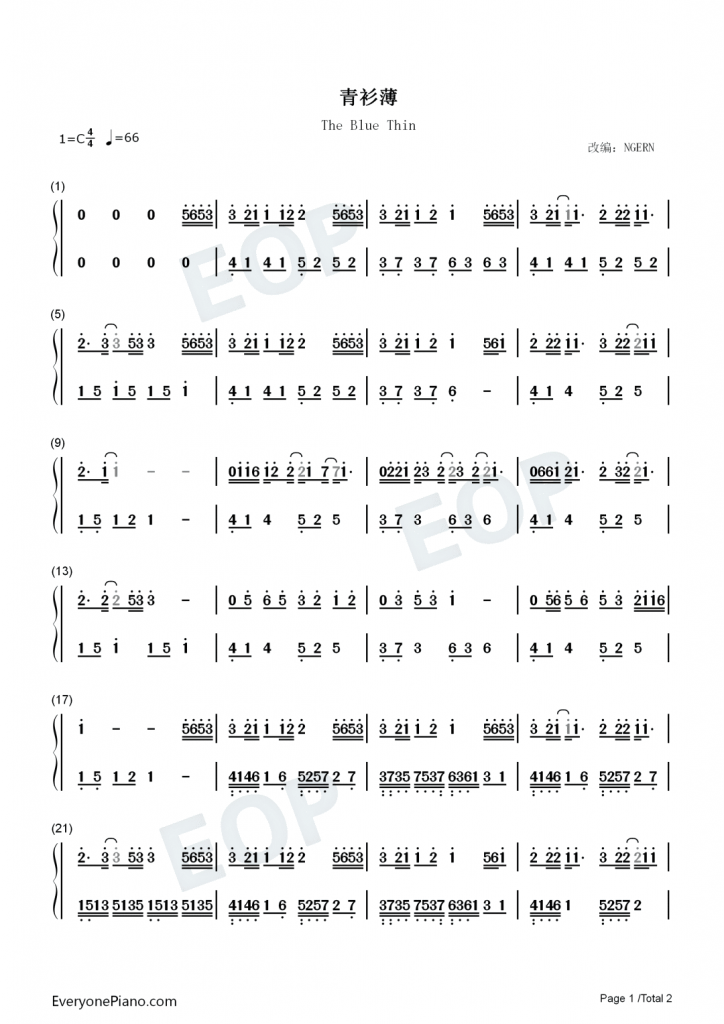 唯美古风曲《青衫薄》钢琴数字简谱