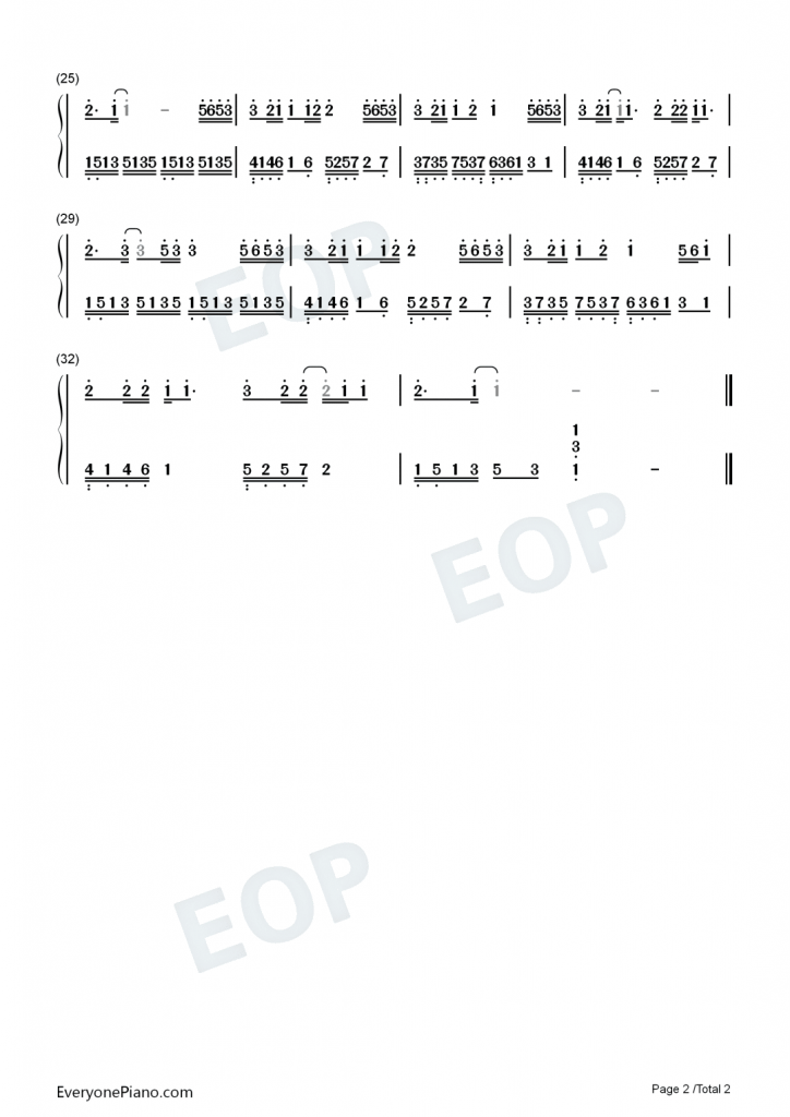 TA 钢琴数字简谱 简单版-抖音热歌-不是花火呀