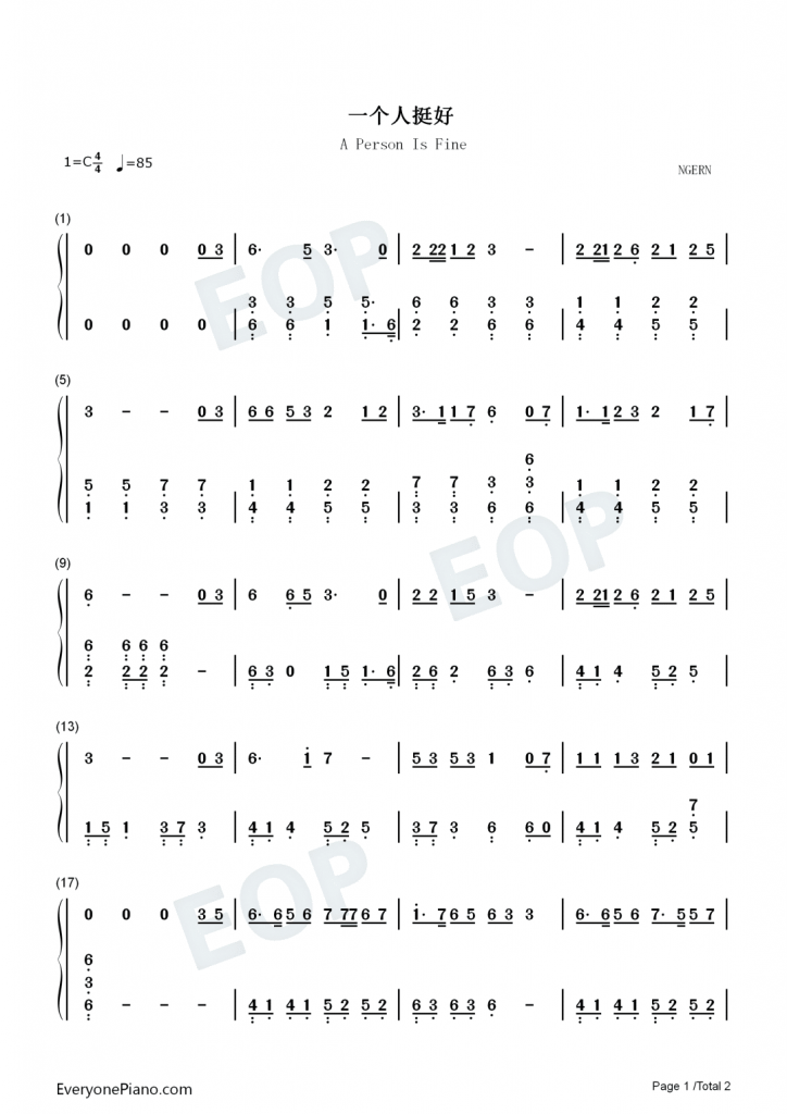 一个人挺好 钢琴谱-愿你只听曲中意,不做曲中人
