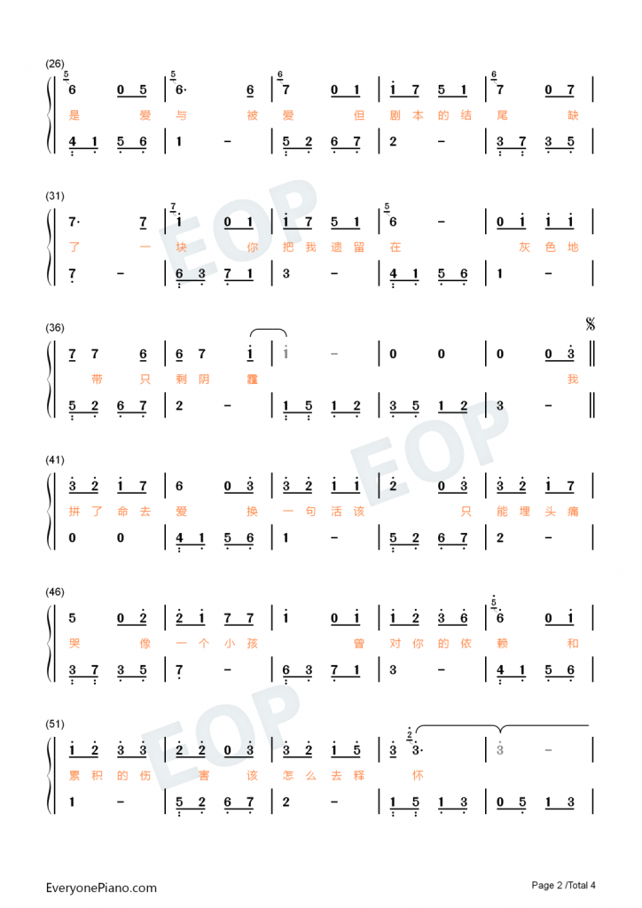 白鸽 钢琴谱-教堂的白鸽不会亲吻乌鸦-你的上好佳