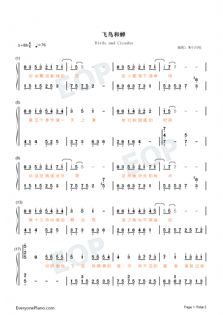 当前位置:首页 » 曲谱 » 流行曲谱 » 抖音热歌《飞鸟和蝉》钢琴数字简谱-你骄傲的飞远我栖息的夏天-任然