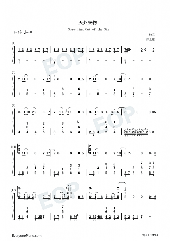 薛之谦《天外来物》钢琴数字简谱