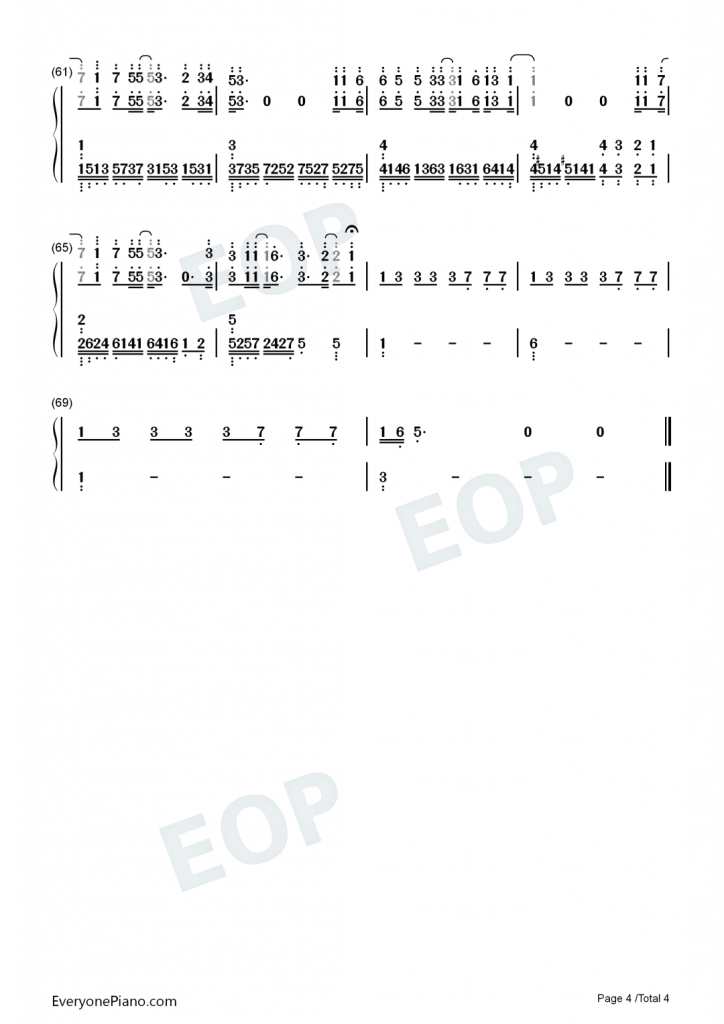 TA 钢琴数字简谱 简单版-抖音热歌-不是花火呀